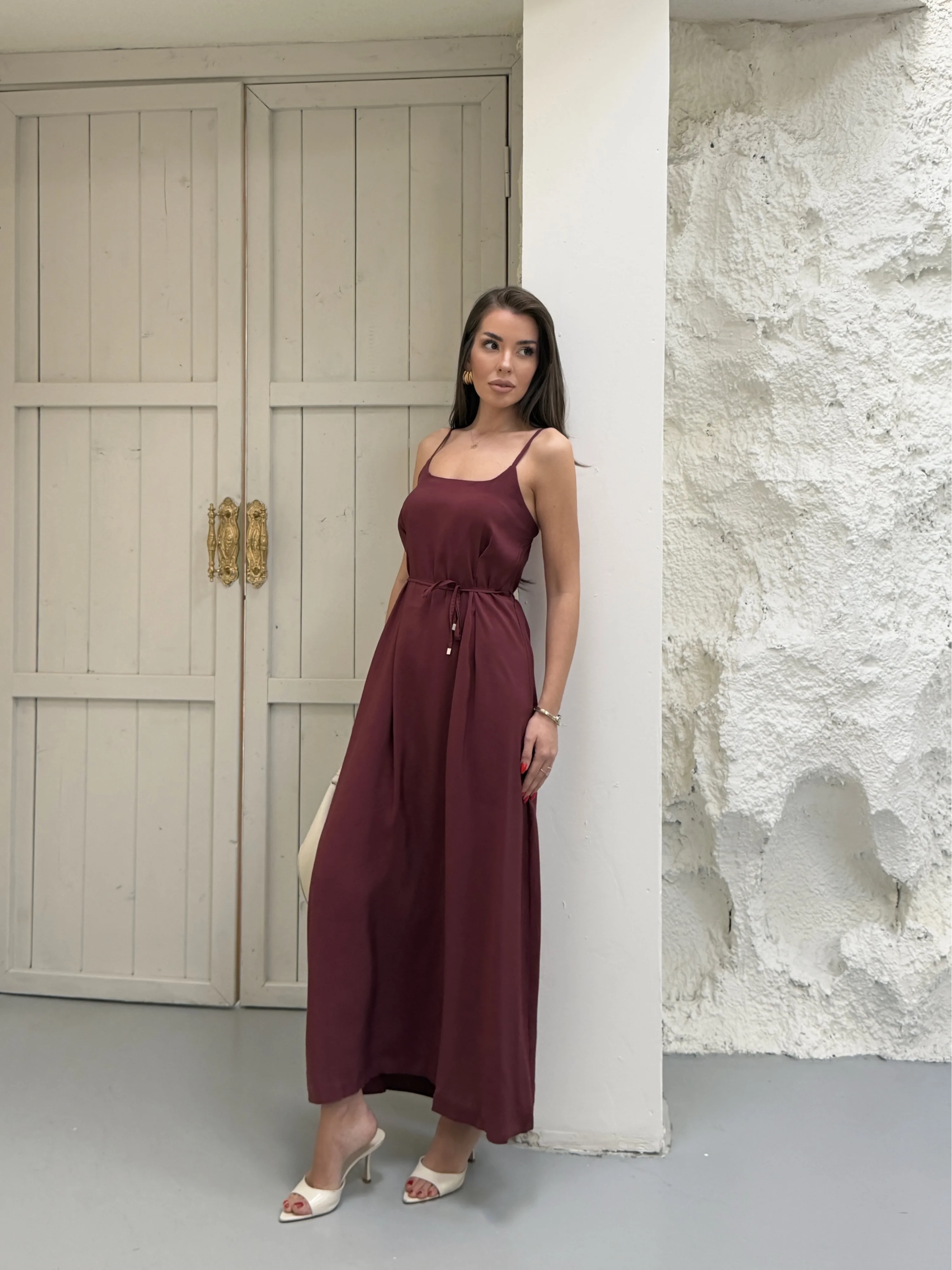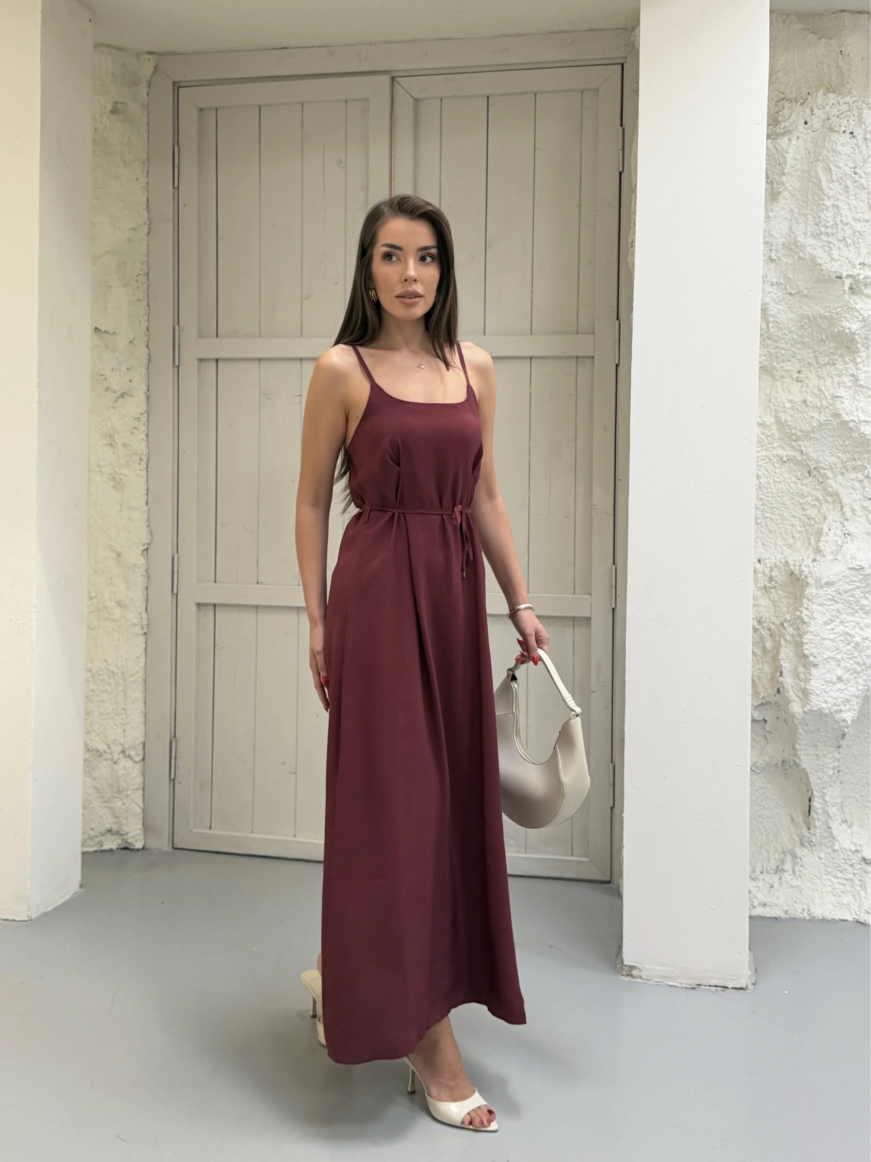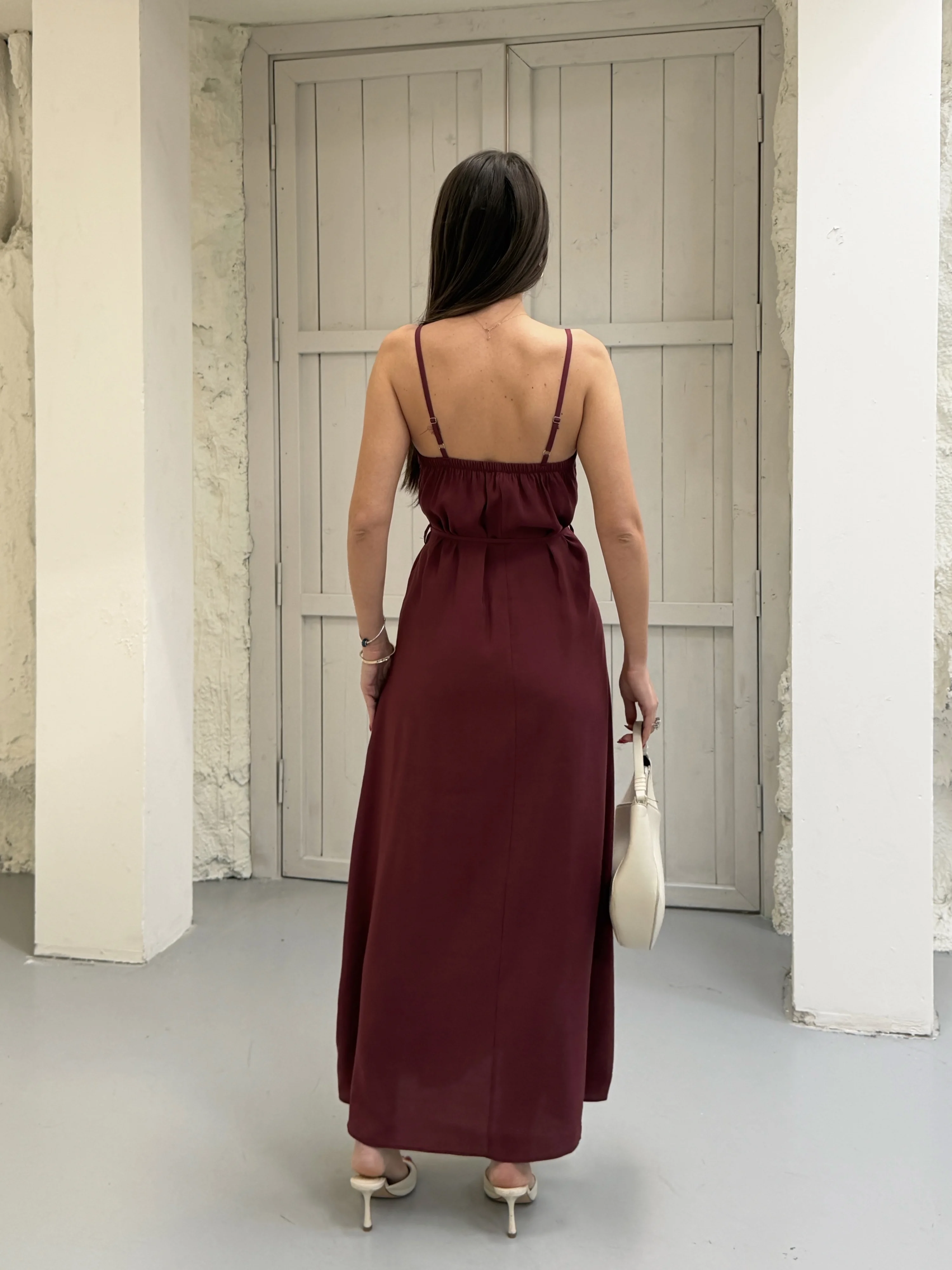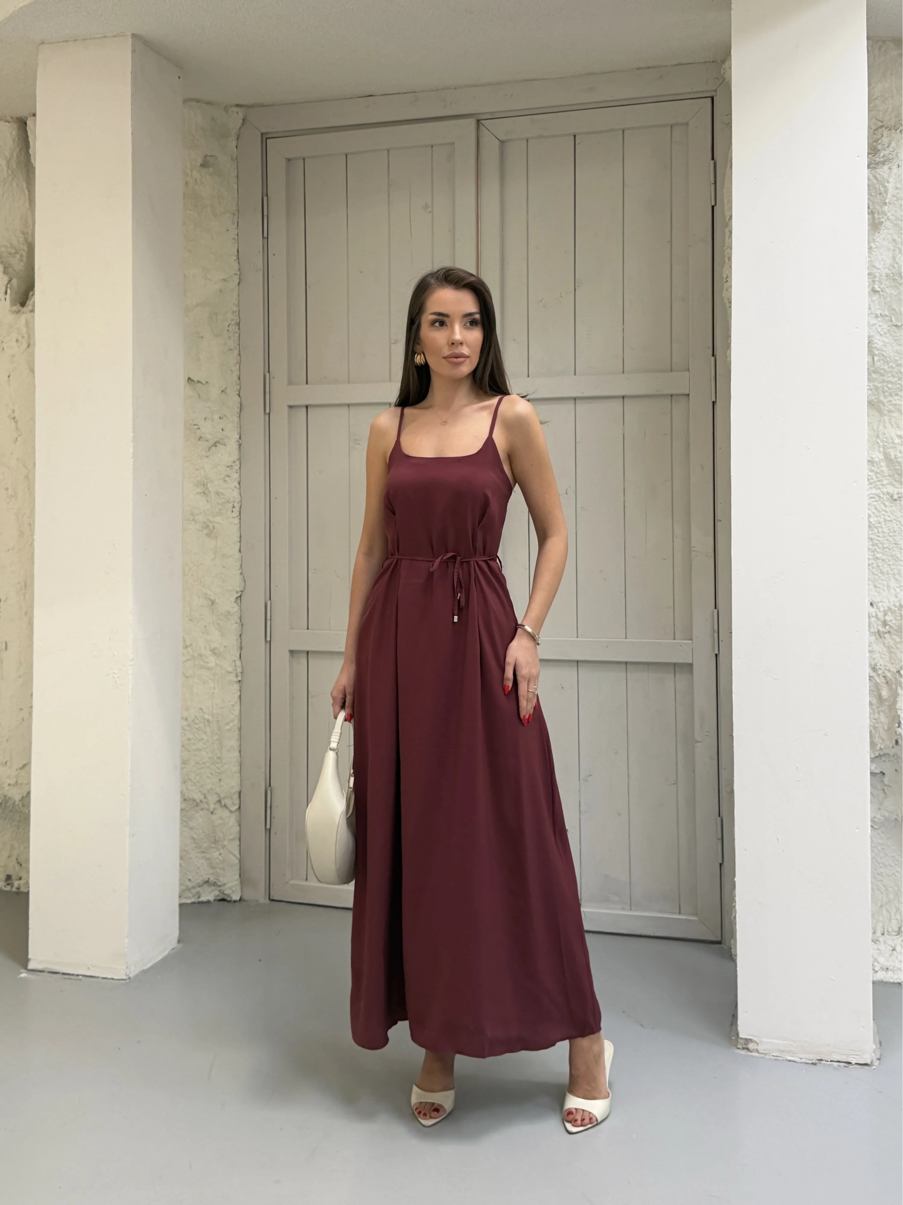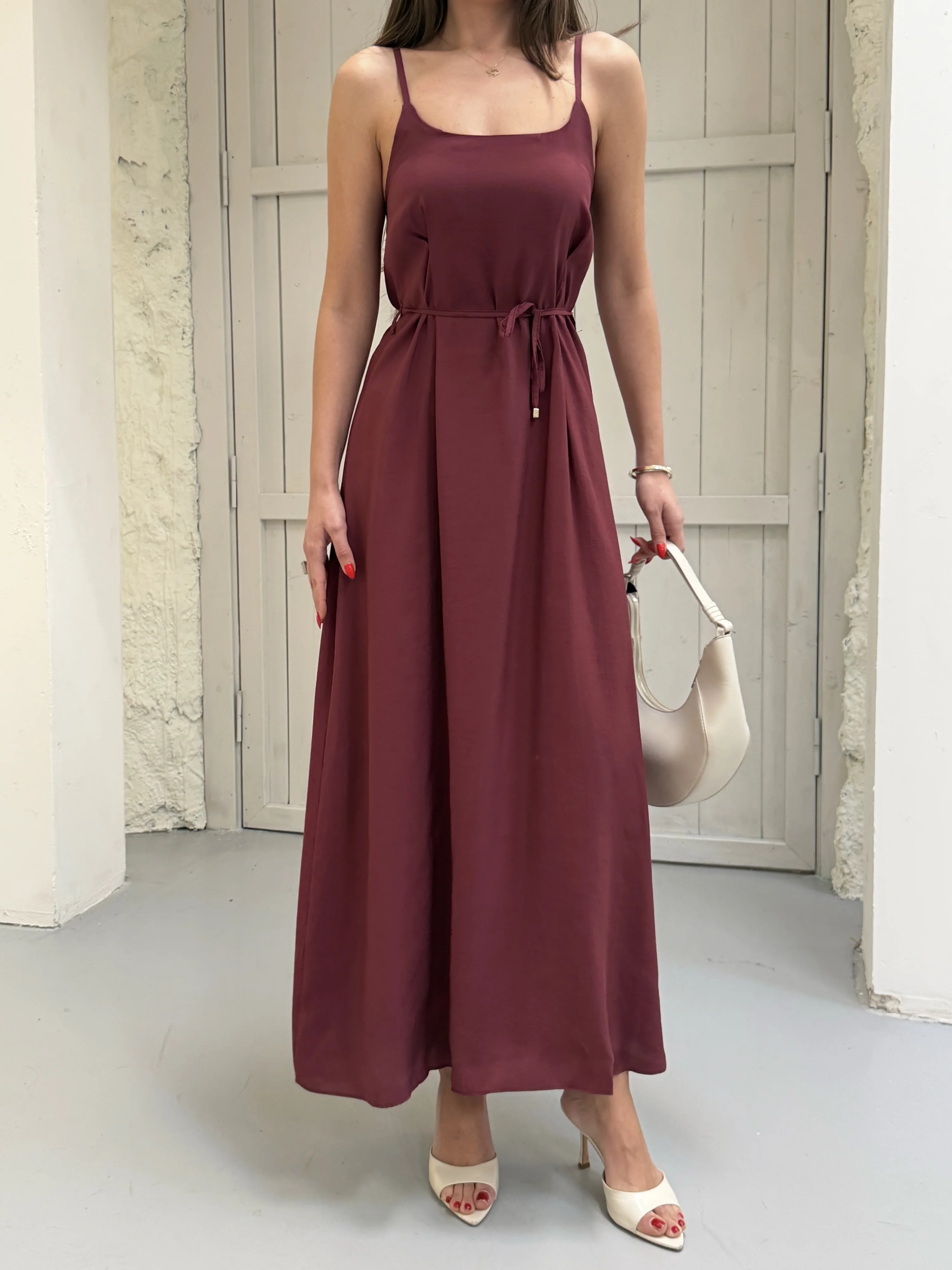 Bordo Modal Askılı Elbise