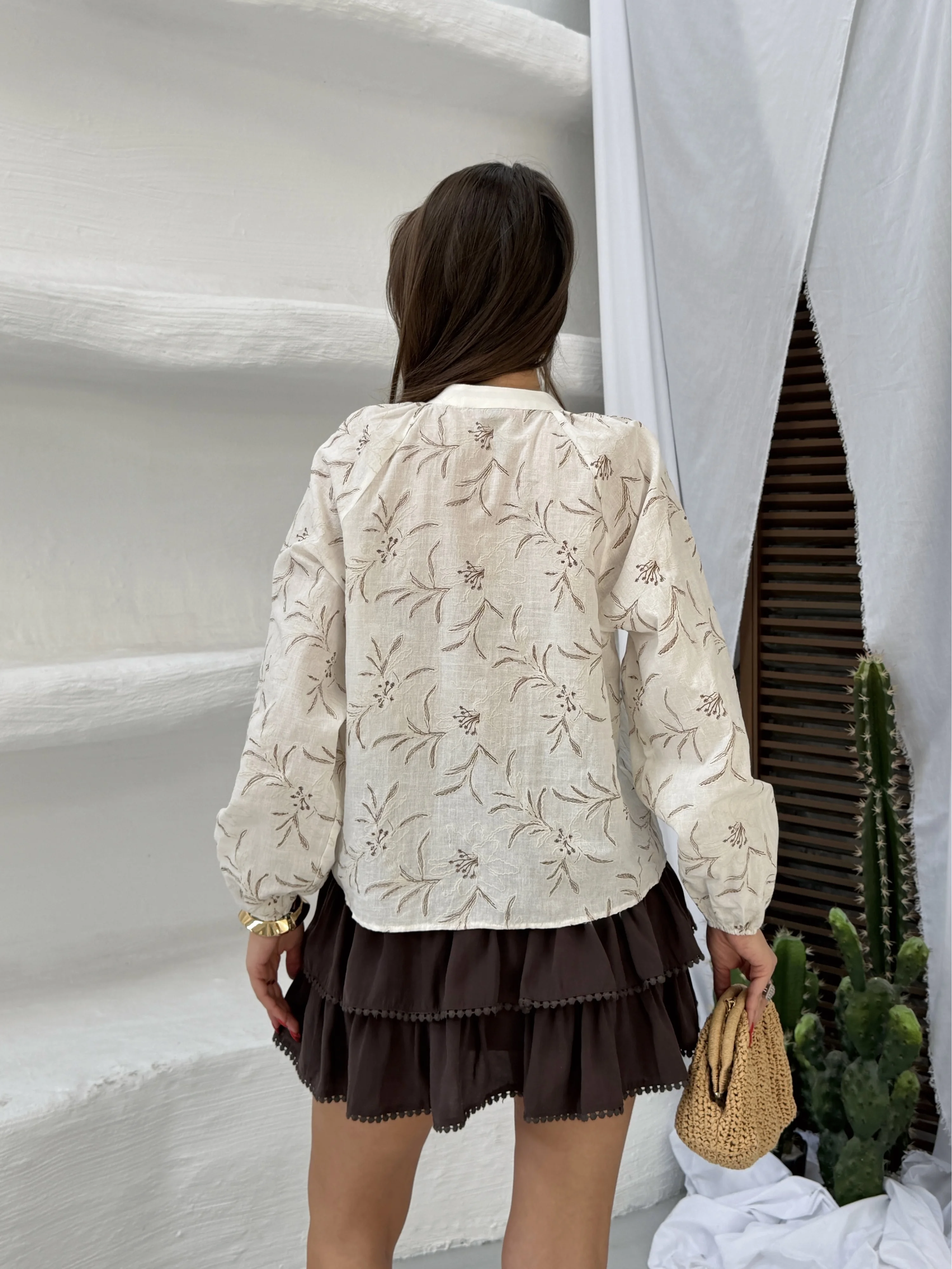 Fırfırlı Etek Hakim Yaka Keten Gömlek Takım