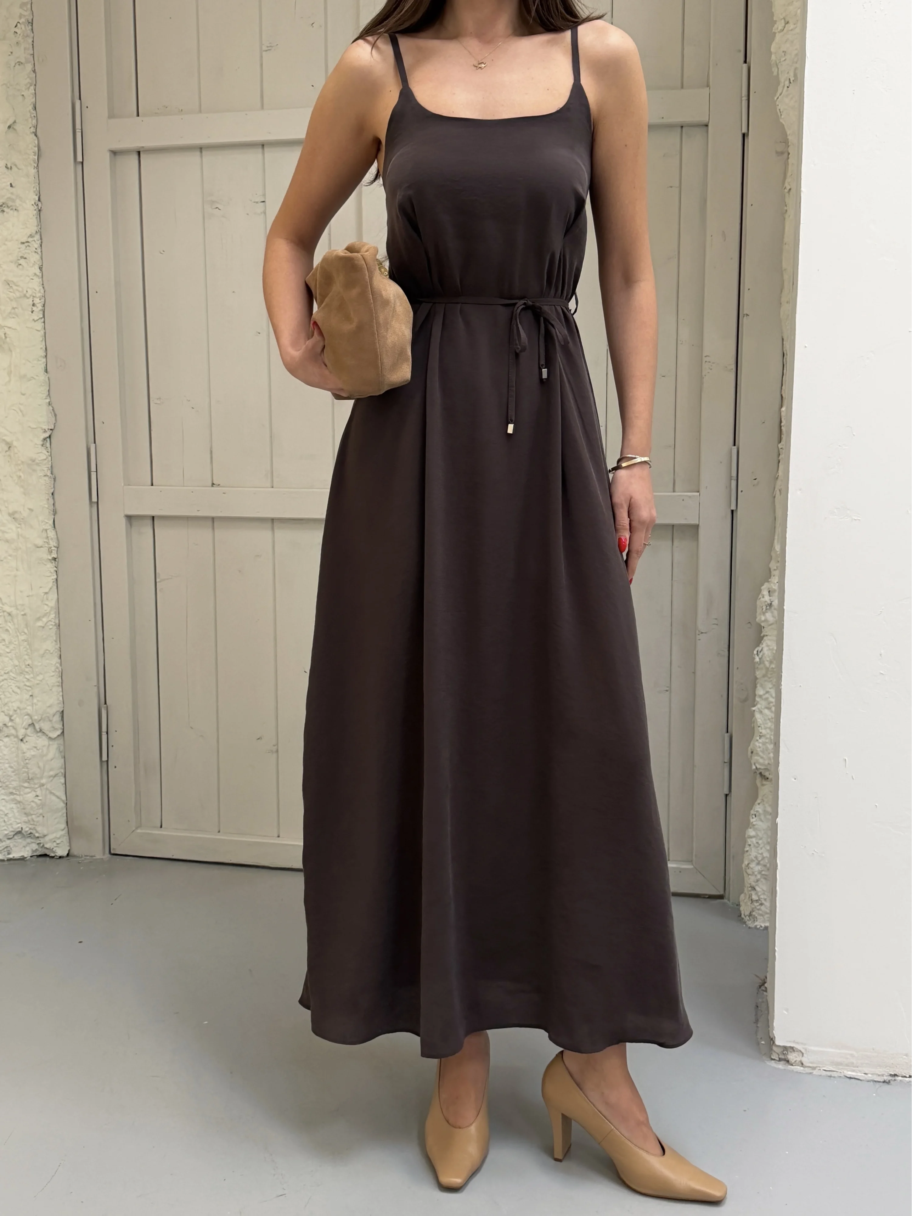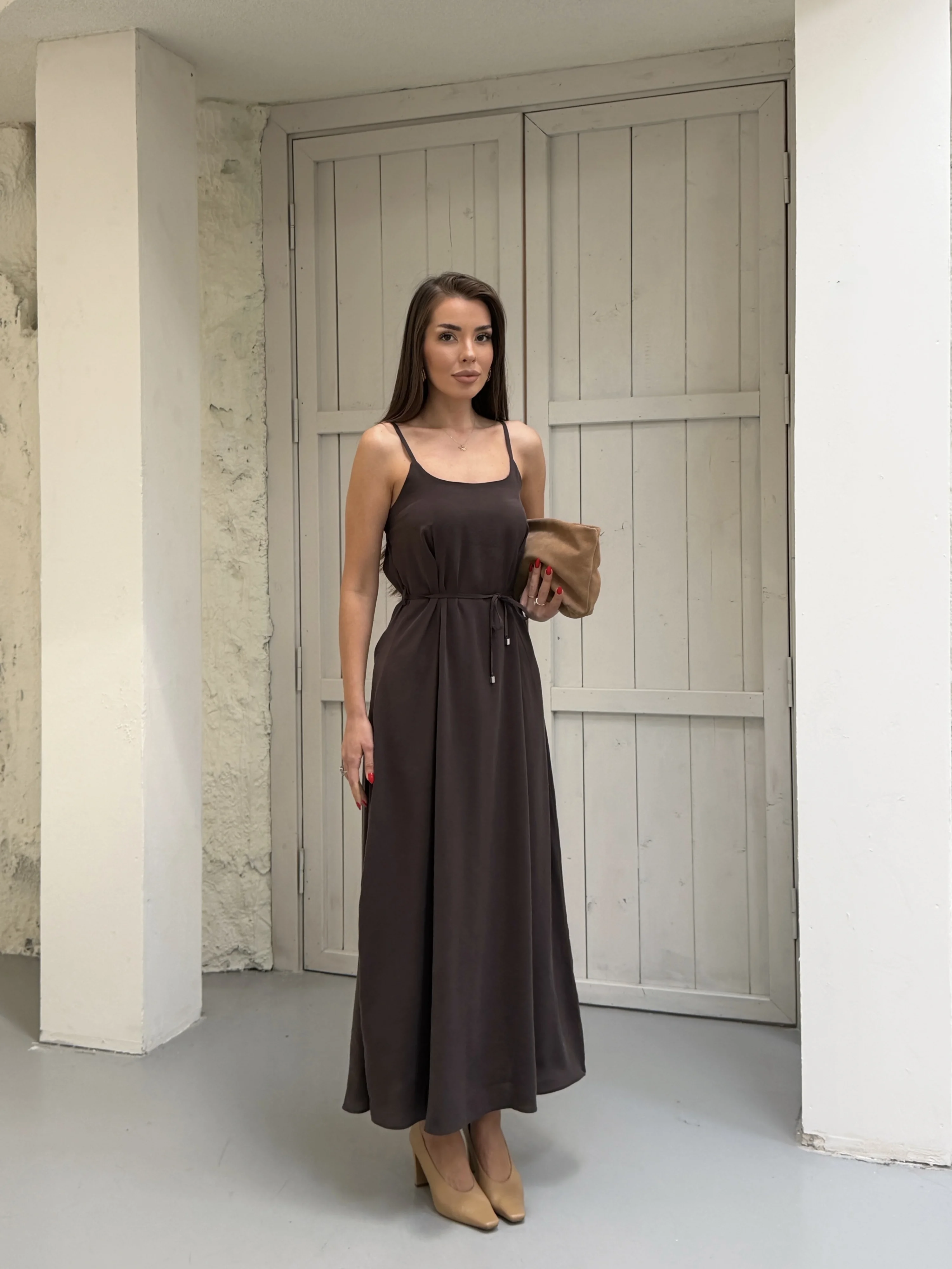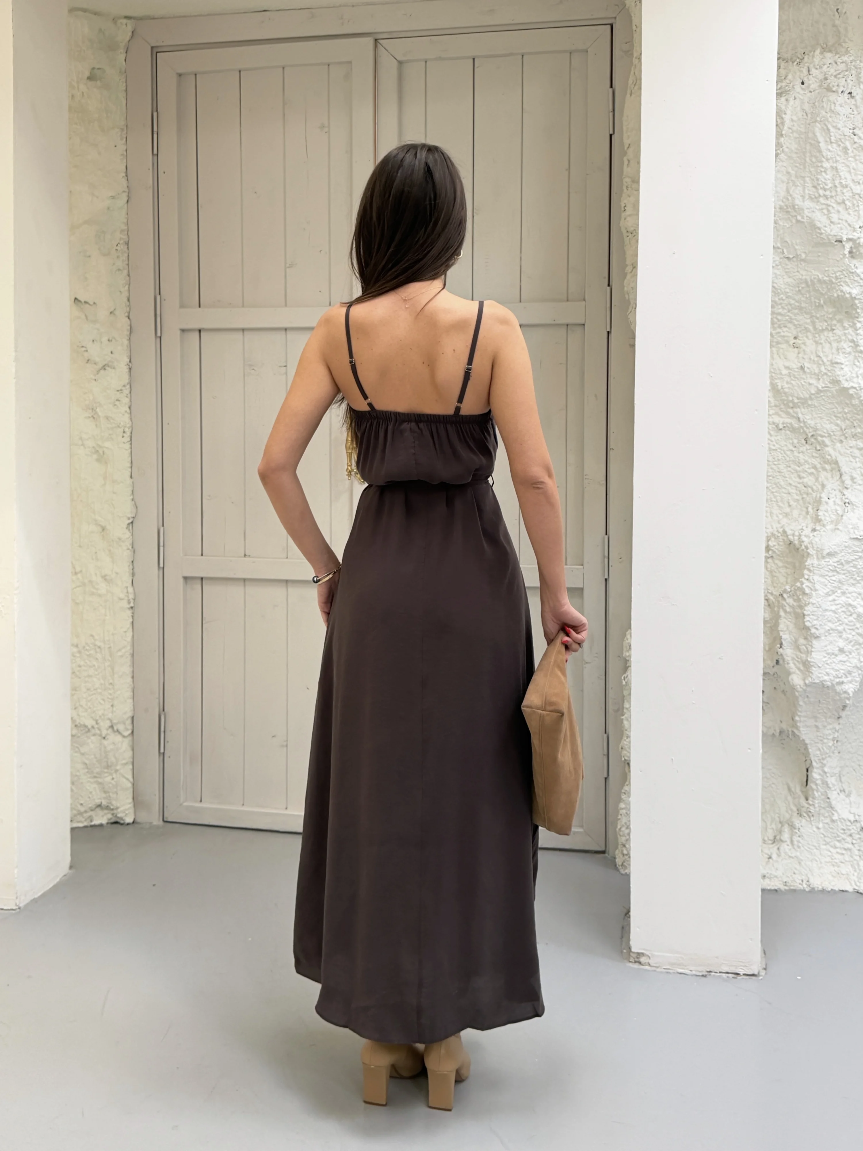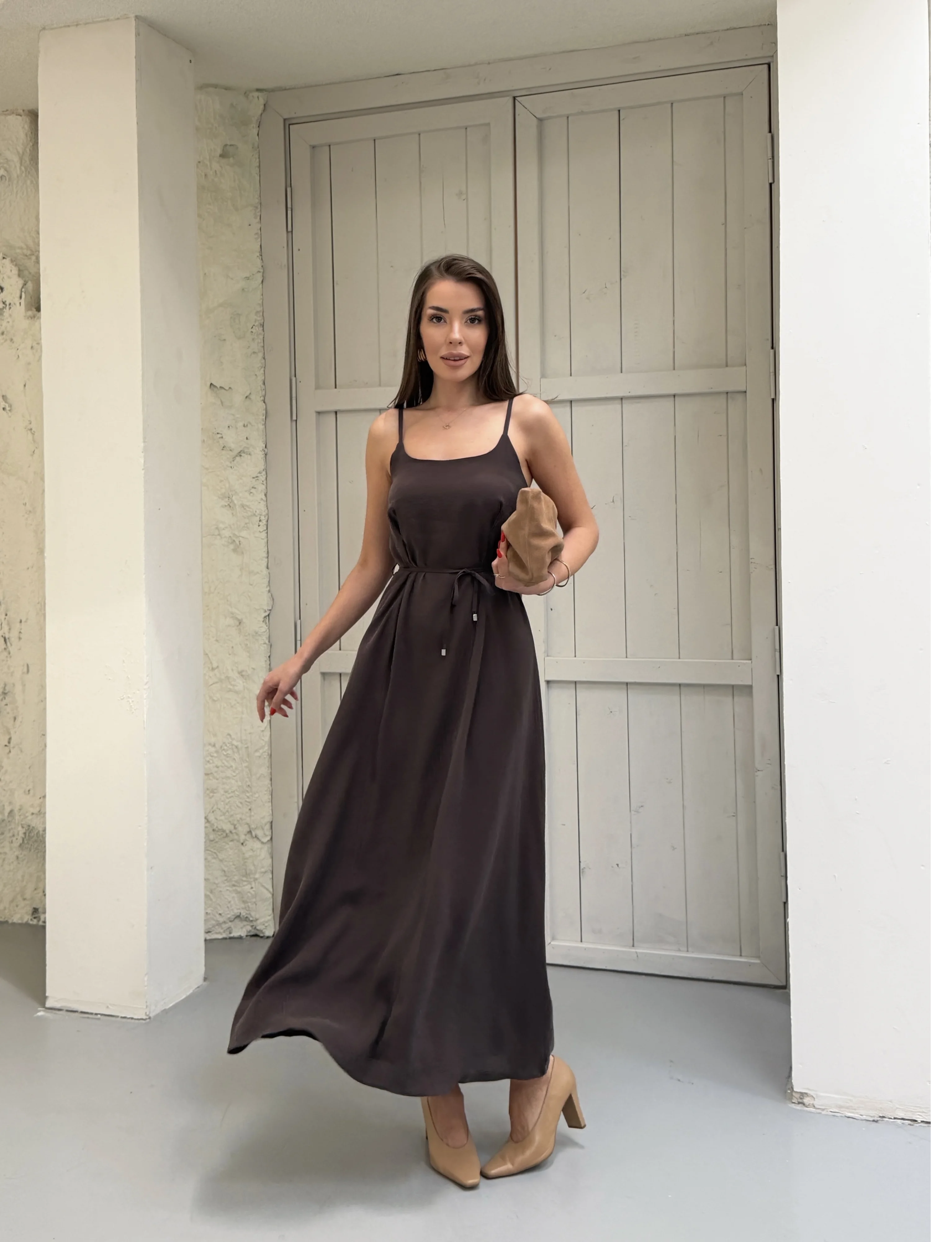 Kahverengi Modal Askılı Elbise