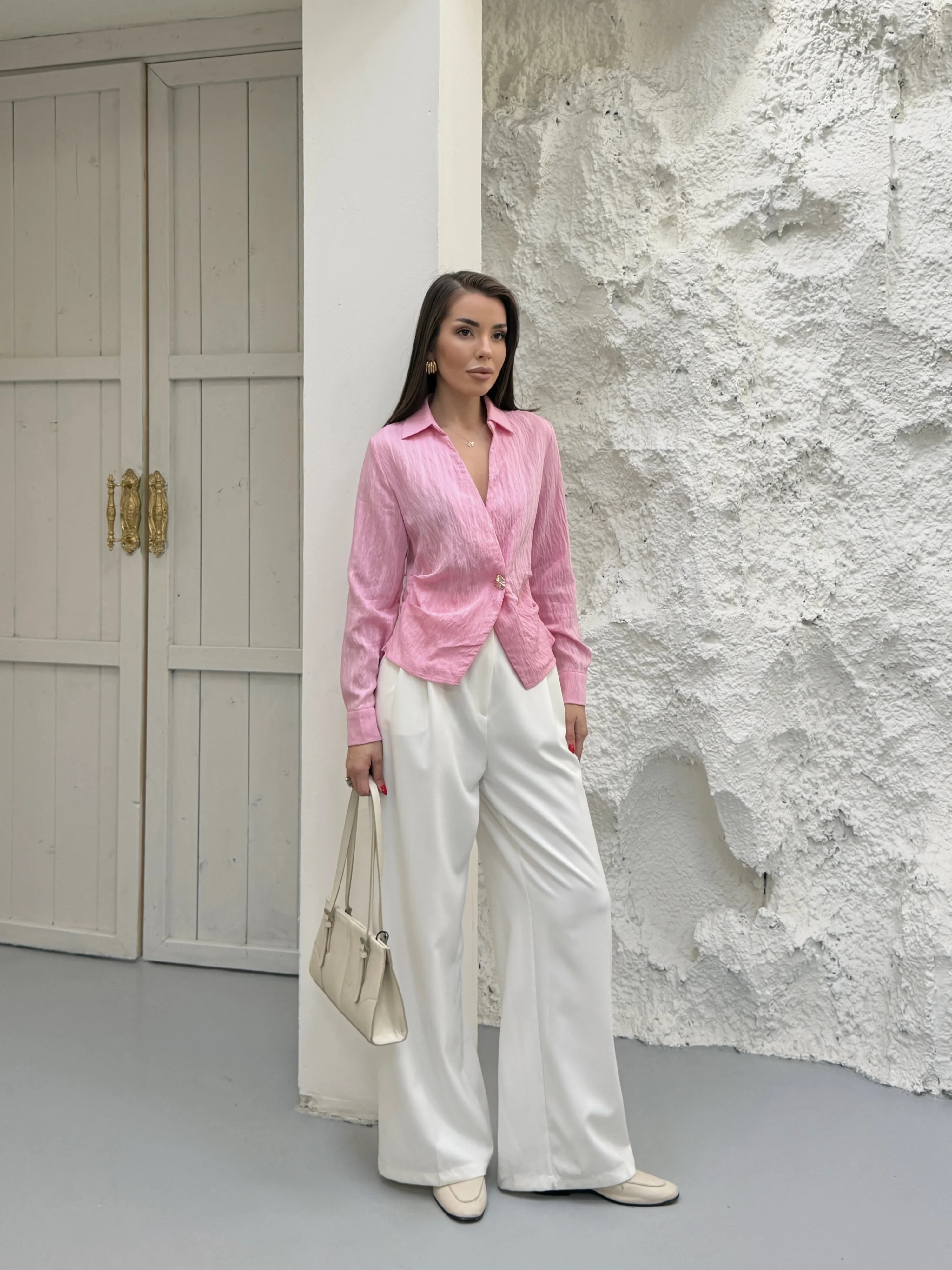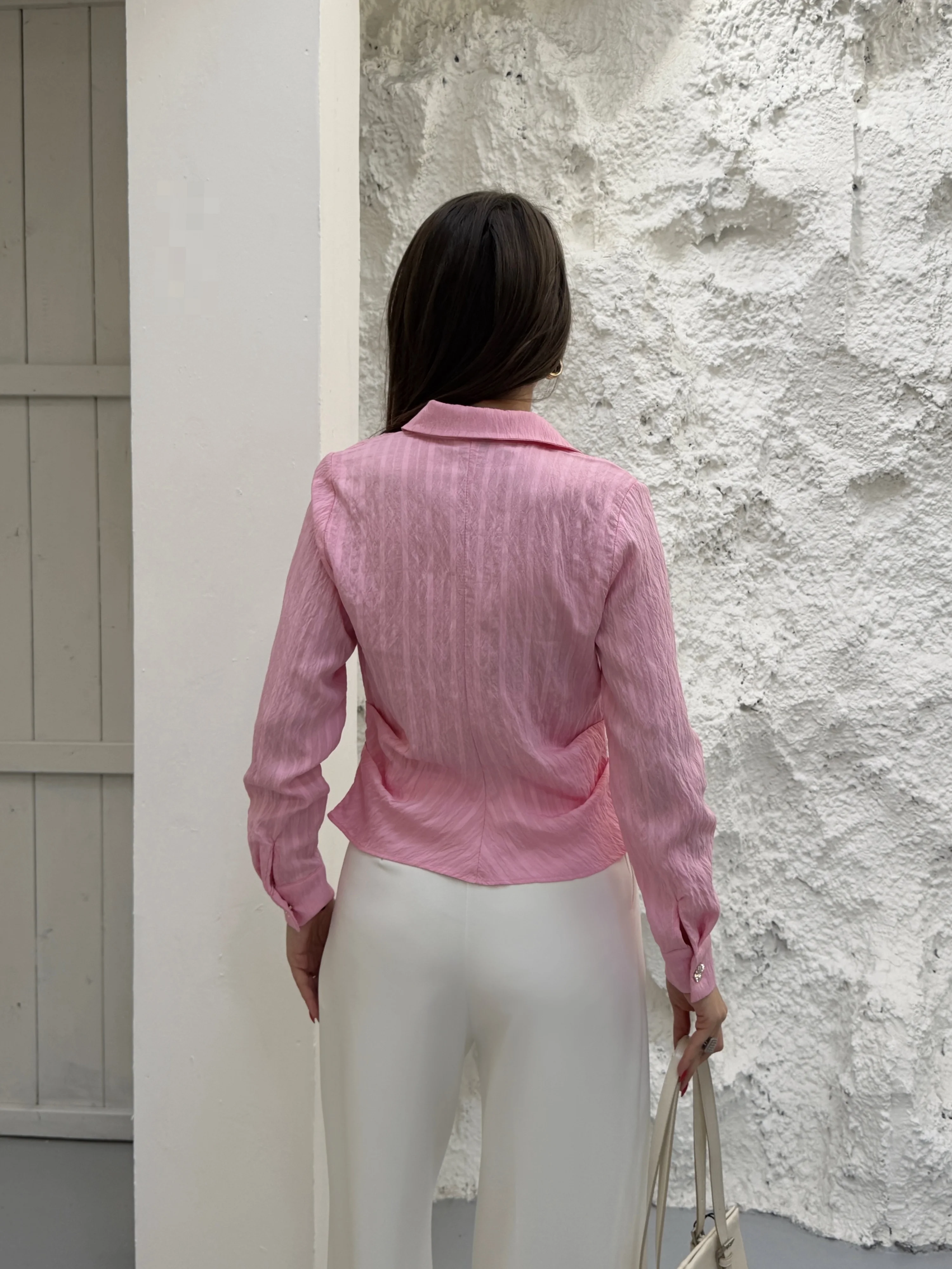 Pembe Gold Düğmeli Pileli Gömlek