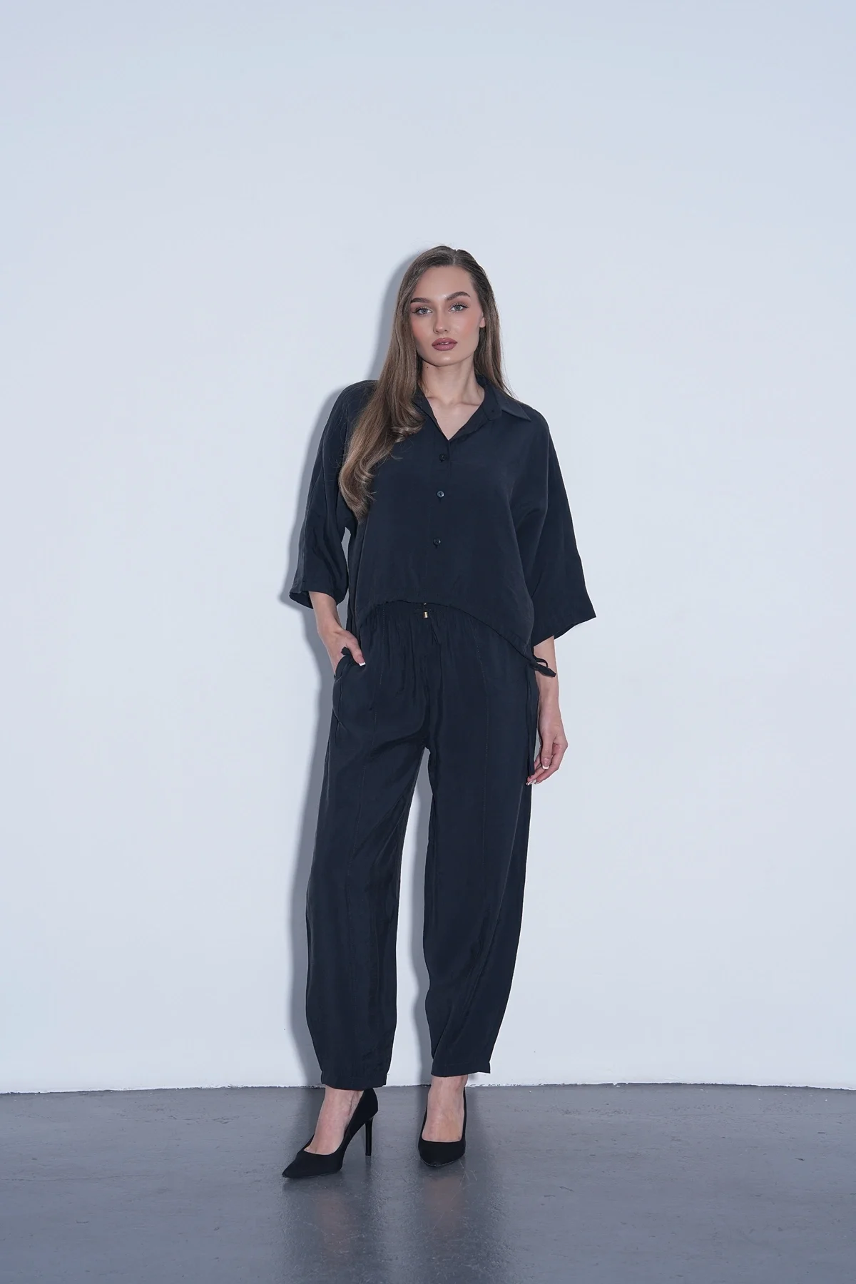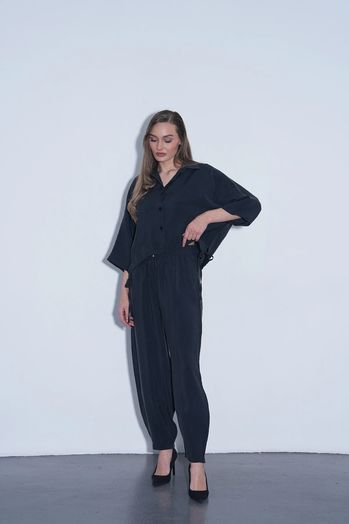 Siyah Modal Gömlek Pantolon Takım