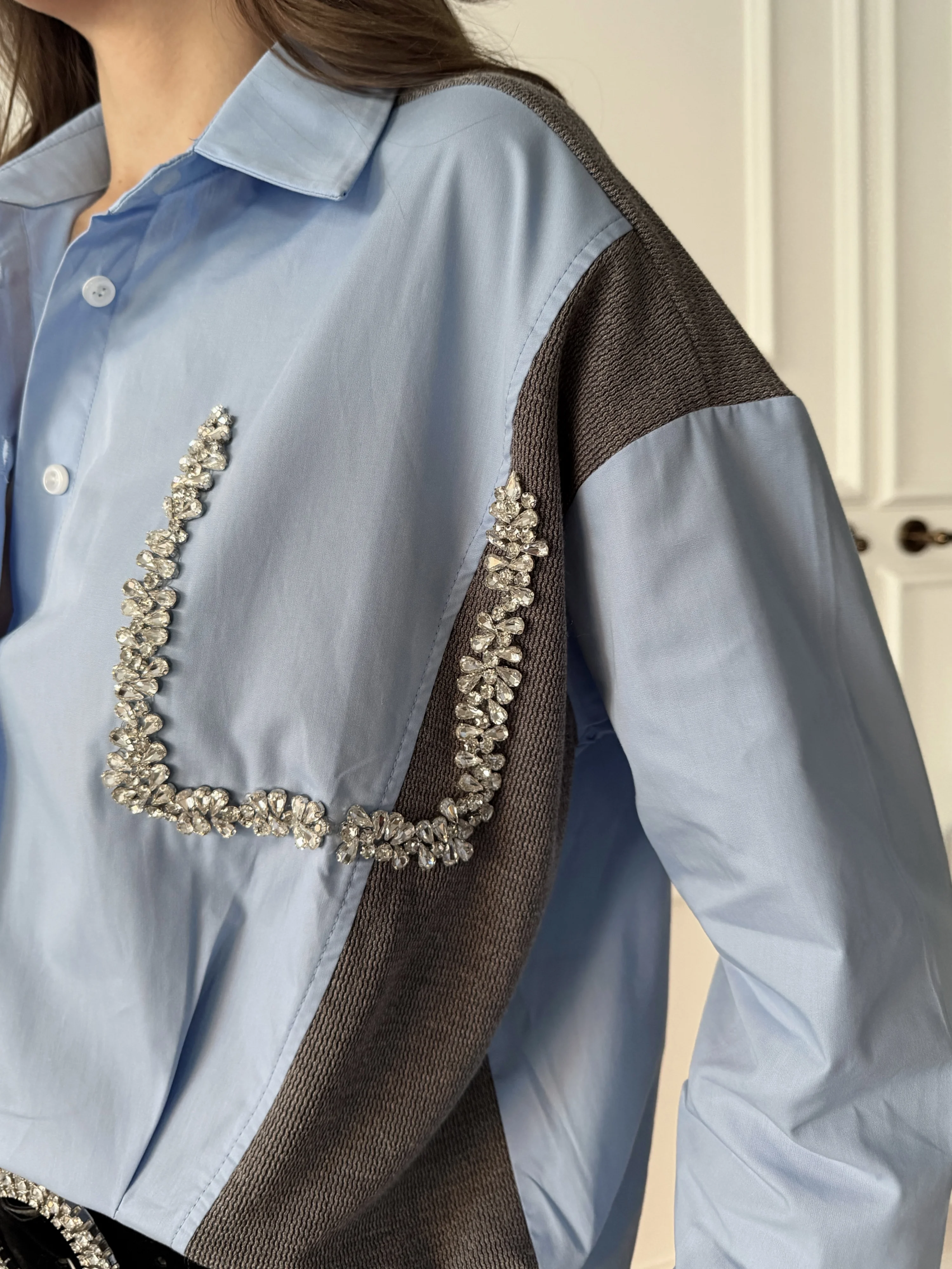 Triko Poplin Taş Detay Gömlek